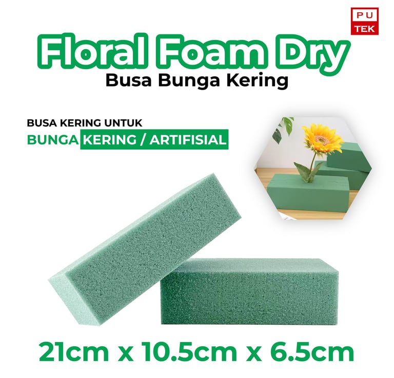Floral Foam Dry by PUTEK is specially designed for artificial and dried flower arrangements. It provides a firm and stable base to securely hold stems in place without water absorption. With its dense structure and clean finish, this product is ideal for long-lasting decorative arrangements.
