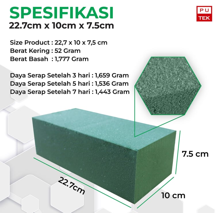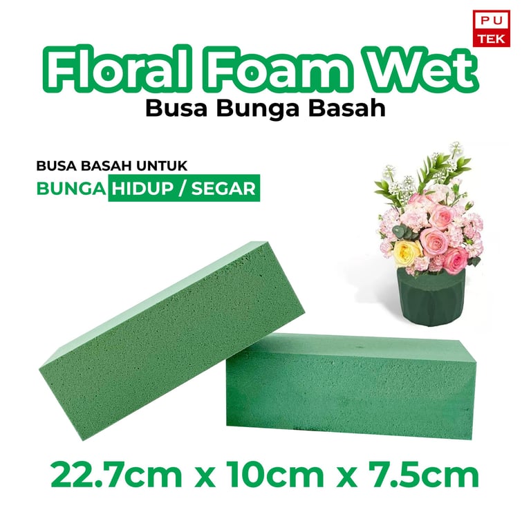 Floral Foam Wet by PUTEK is specially designed for fresh and live flower arrangements. With high water absorption capacity and a strong, dense structure, this product helps keep flowers fresh longer by ensuring even water distribution. Ideal for professional florists and event decorators.