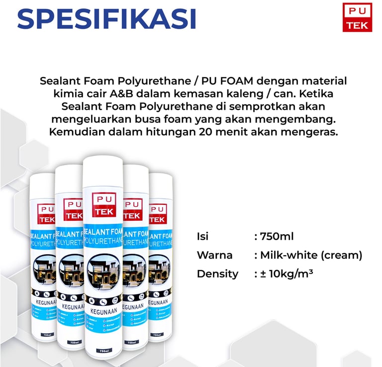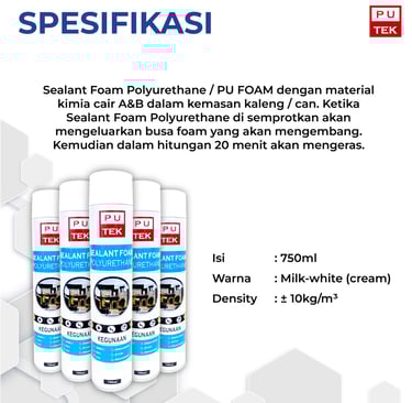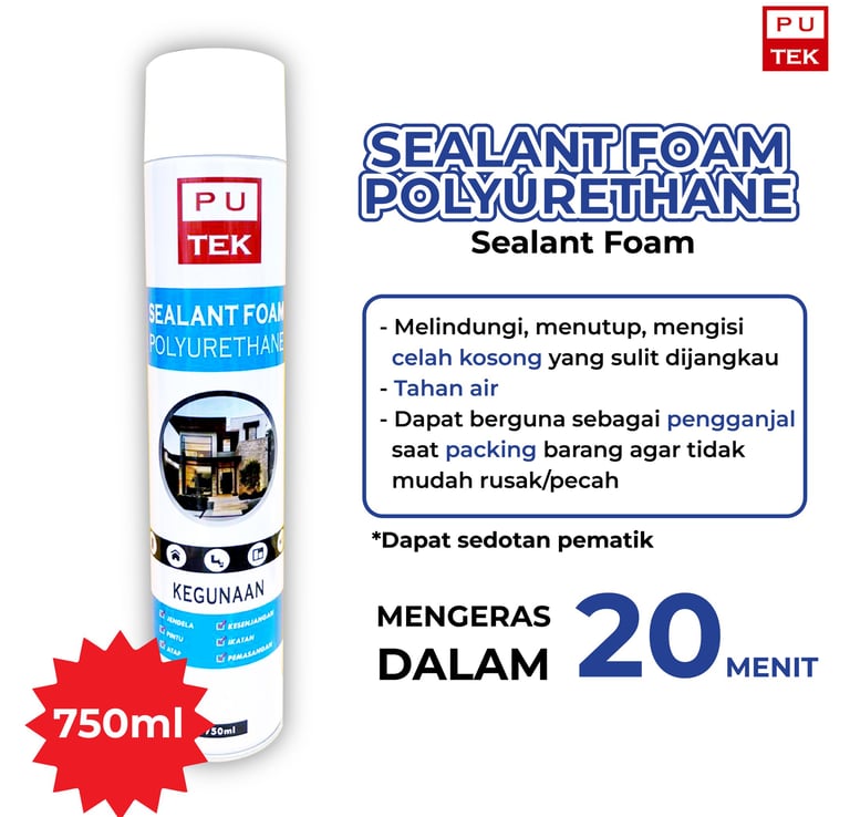 Sealant Foam Polyurethane by PUTEK is a ready-to-use expanding PU foam sealant designed to fill, seal, and protect hard-to-reach gaps and cavities. When sprayed, the foam expands and hardens within a short time, providing strong sealing, insulation, and protection.